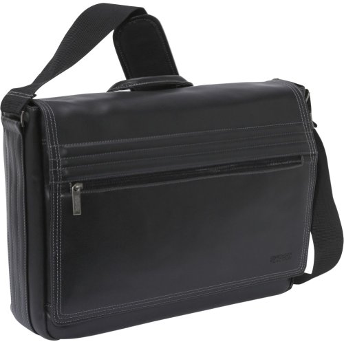 Kenneth Cole Reaction "A Stitch In Time" Leather Messenger Bag (Black)